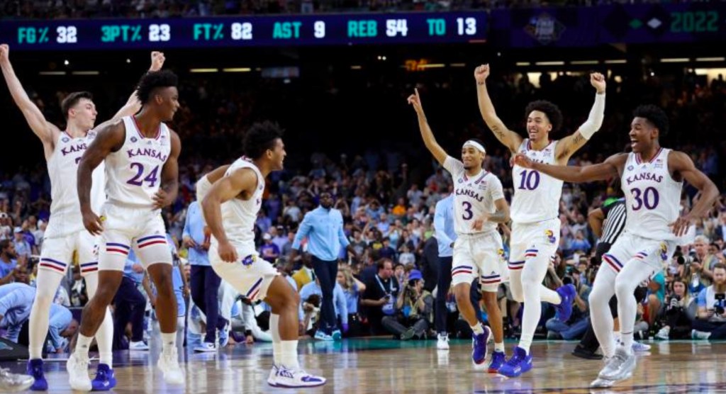 Kansas made March Madness history with a 72-69 victory over UNC in the 2022 NCAA Tournament championship game.