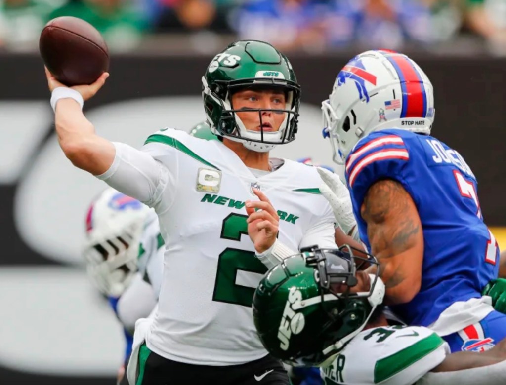 Wilson’s go-ahead touchdown, a 7-yard pass to James Robinson late in the third quarter, occurred after Sauce Gardner recorded the Jets’ second pick of Allen, who was sacked five times by the Jets’ aggressive defense. Wilson then turned to running backs Robinson and Michael Carter on the Jets’ game-winning drive after the Bills had briefly tied the score.