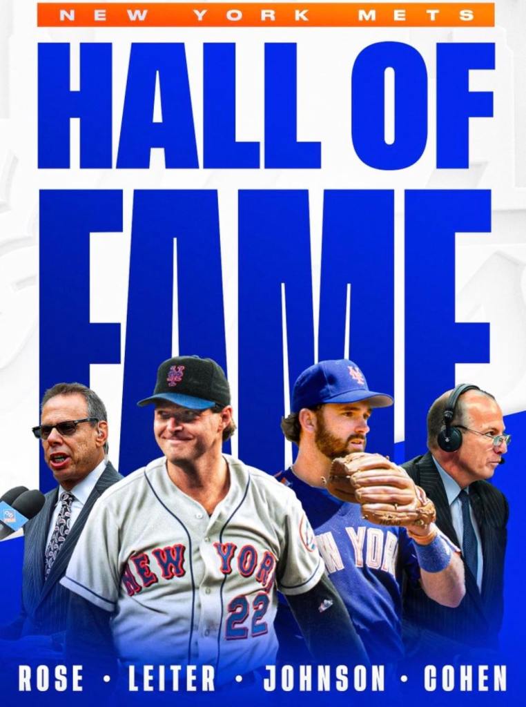 Johnson and Leiter were joined in the 2023 class by broadcasters Gary Cohen and Howie Rose, who have called the team’s games on radio and television since 1989 and 1995, respectively. Longtime media relations executive Jay Horwitz also was honored with a Hall of Fame achievement award.