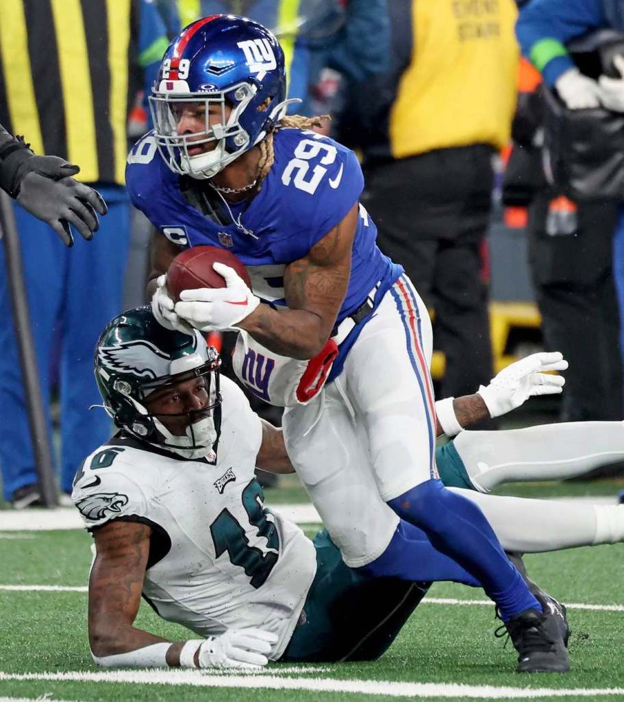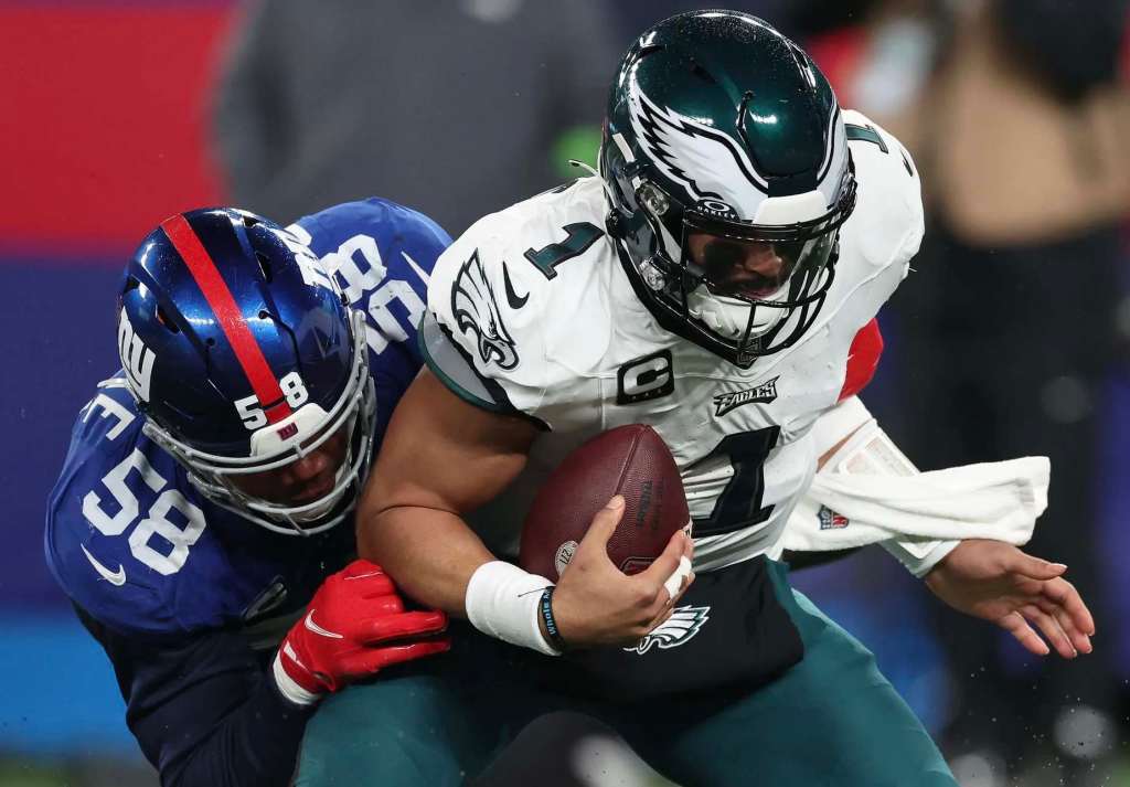 The Eagles pulled quarterback Jalen Hurts and several starters in the second half. Saquon Barkley, in what could be the curtain call on his six-year stay with the Giants, rushed for two touchdowns.
