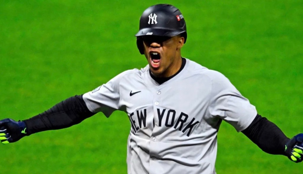 The 25-year-old Dominican outfielder crushed a fastball from Cleveland pitcher Hunter Gaddis over the centerfield wall to score the deciding runs in a thriller that sent the Yankees into their record 41st World Series overall.