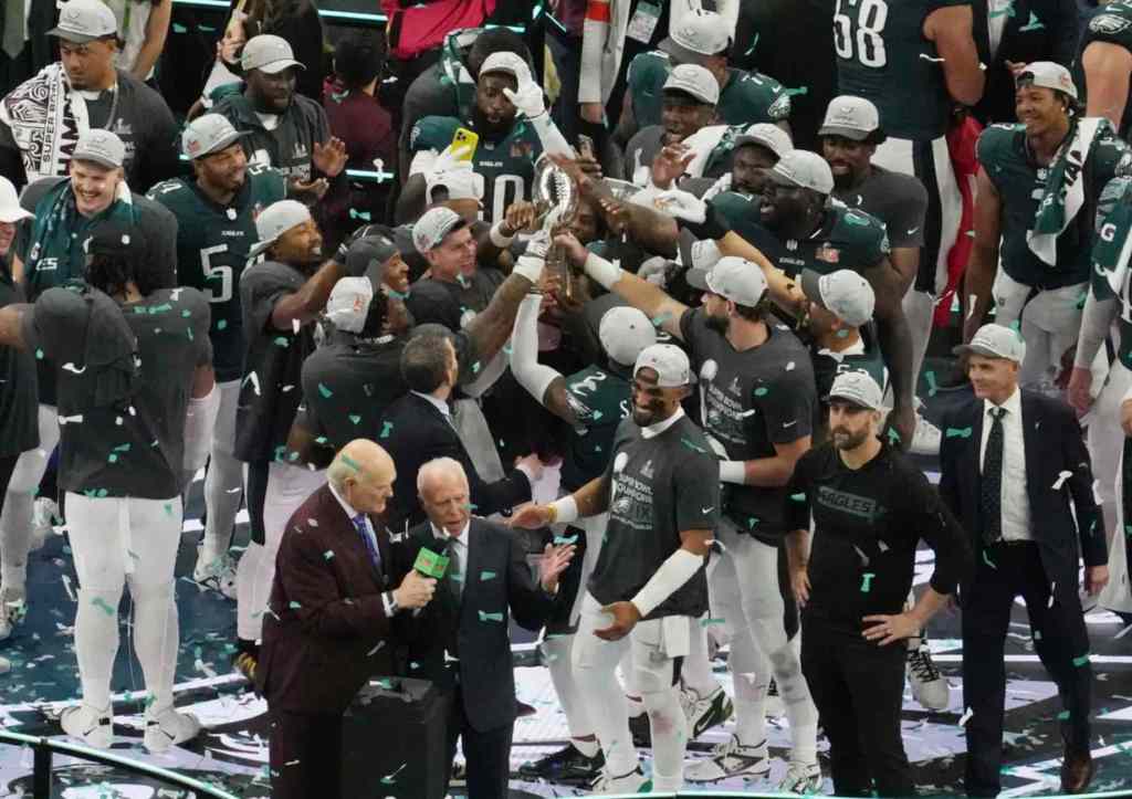 The Eagles defeated the Kansas City Chiefs, 40-22, in Super Bowl LIX at Caesars Superdome in New Orleans on February 9. Eagles quarterback Jalen Hurts threw for 221 yards, two touchdowns and one interception on 17 of 22 passing, while also recording 72 yards and one touchdown on 11 rushing attempts to be named Super Bowl MVP.
