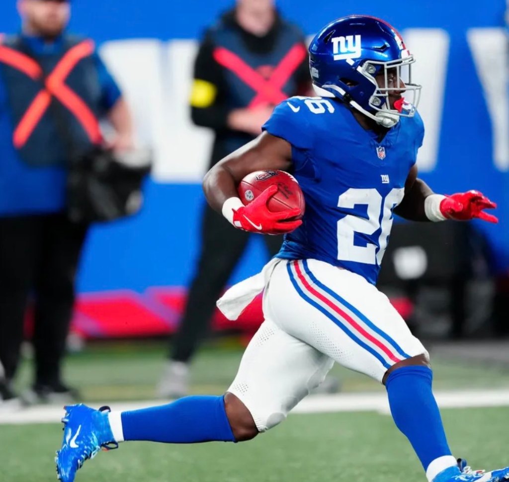 The Giants scored touchdowns on three of four possessions and gained 198 yards in the first half and Skattebo powered into the end zone early in the third.