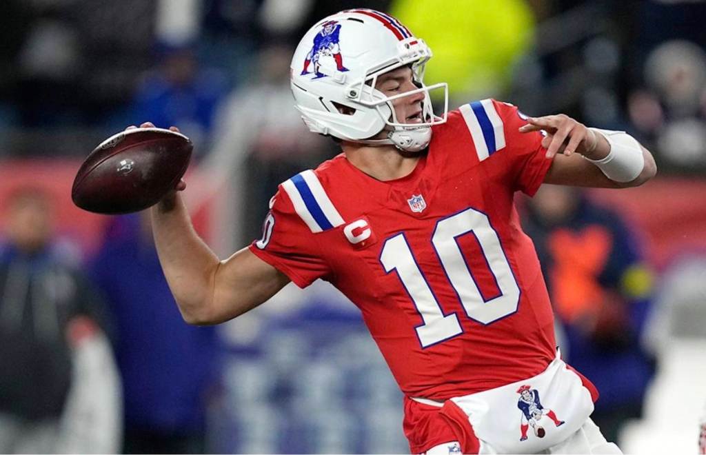 Maye completed passes to eight different receivers, with Hunter Henry catching four for 73. Kyle Williams had a 33-yard touchdown reception, and Kayshon Boutte scored on a 3-yard catch.