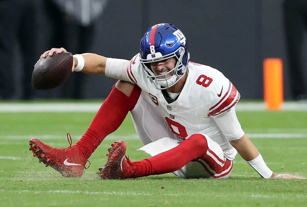 The Giants welcomed back Daniel Jones for Sunday’s game against the Raiders but the 26-year old quarterback did not make it out of Allegiant Stadium unscathed.